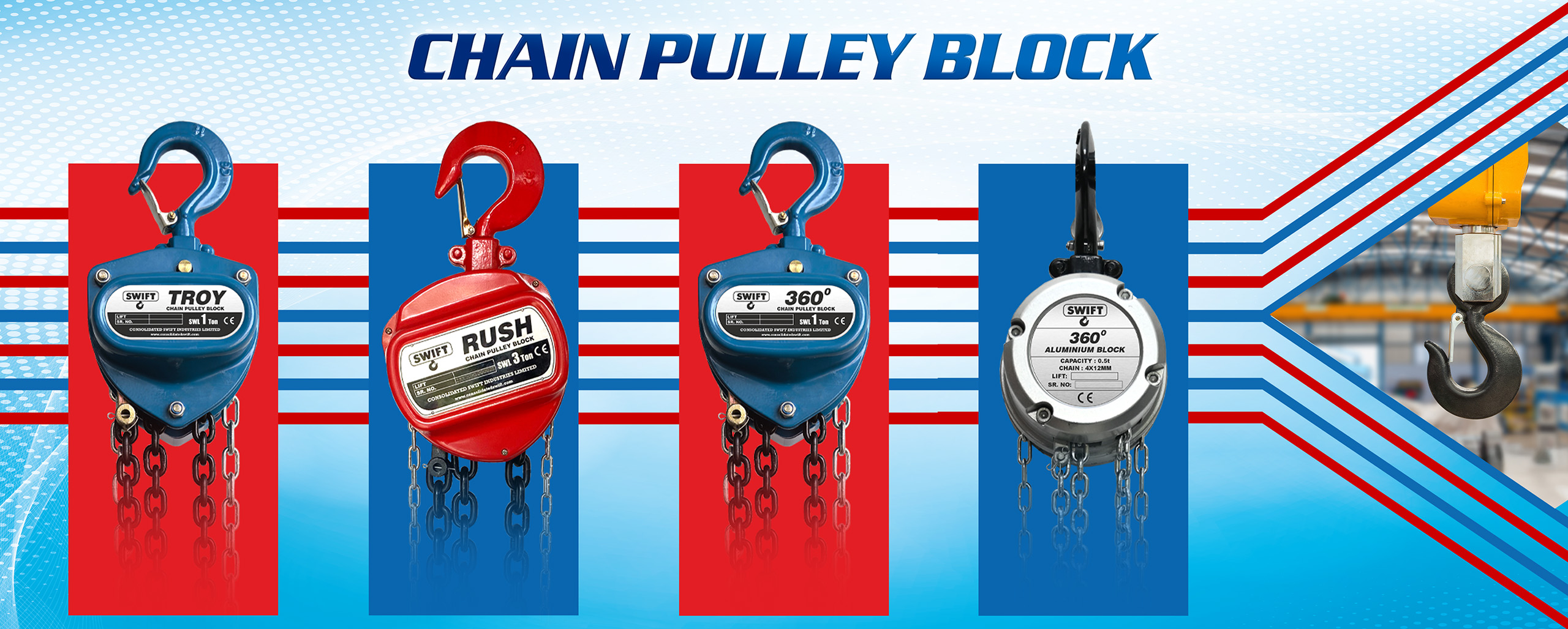 Blocks combine robust construction, advanced safety features, and ergonomic designs to ensure secure material handling every time. Whether in workshops, warehouses, or remote construction sites, our hoists are crafted for high mechanical efficiency, easy operation, and long service life. From light-duty lifting to heavy industrial loads, SWIFT’s manual hoisting solutions deliver unmatched reliability with minimal effort.